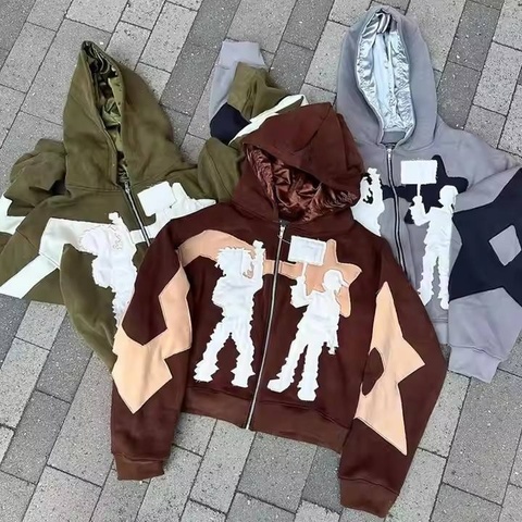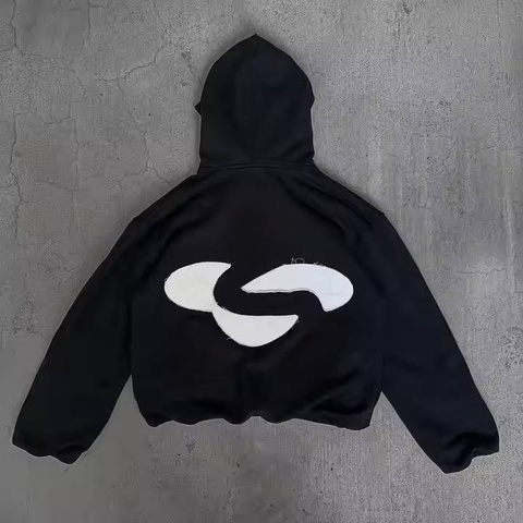 Personalizado 100% Algodão XL Tamanho Hoodie Oversized Hood Zipper Padrão Sólido Tecido Terry 3D Bordado Design Camisola Colheita para