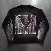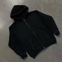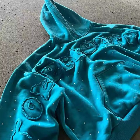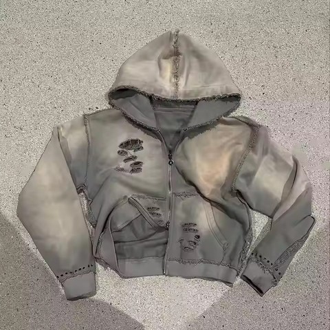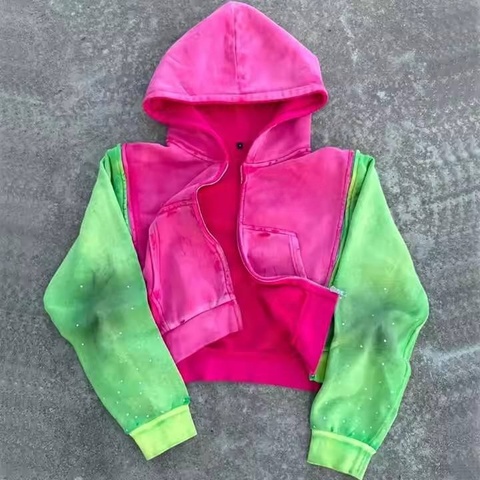 Corte personalizado Sew 500gsm Pesado Cropped Hoodie Pedra Oversized Lavado Strass Afligido 100% Algodão Inverno Zipper Design