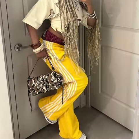 Mid-peso Personalizar Logotipo Bordado Calças Perna Larga Cintura Dupla Calças Side Stripes Uniforme Trackpants