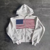 US America Herren Hoodie aus reiner Baumwolle mit Reiß verschluss Y2K Harajuku Streetwear National flagge Übergroßer, lockerer Sweatshirt-Strass druck